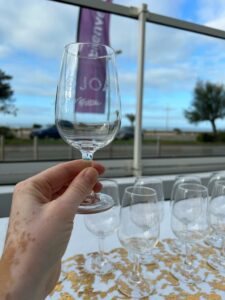 Verres à vin élégants gravés du logo Joia, parfaits pour rehausser l’expérience de dégustation.