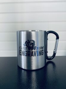 Mug en acier avec logo d’entreprise, représentant le professionnalisme et la qualité