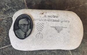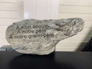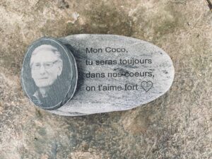Hommage éternel sur pierre, avec portrait gravé sur ardoise.